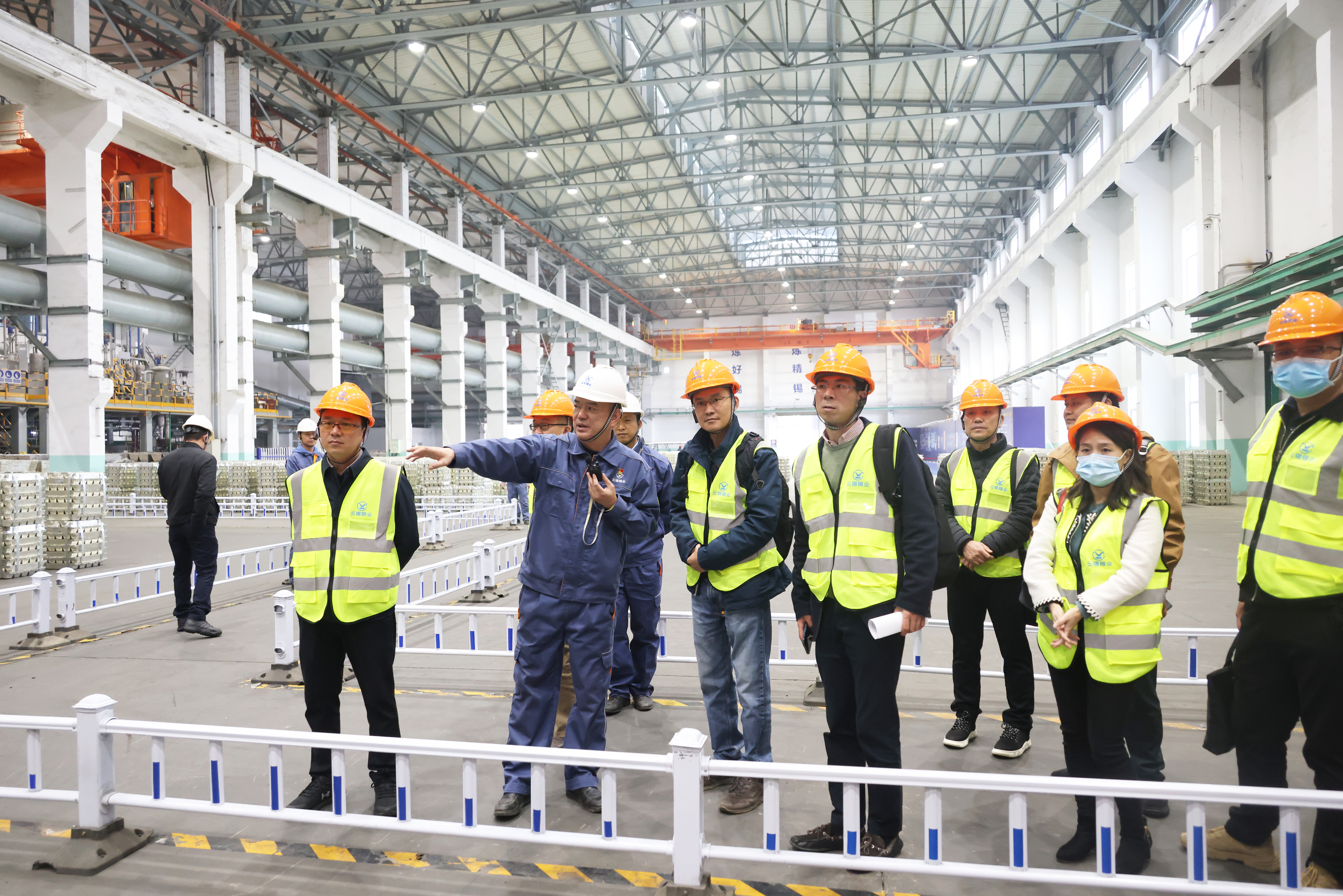 在錫業分公司,調研組詳細了解錫冶煉的歷史沿革、建設背景、產能產量、設計定位、工藝技術、智能化工廠建設、綠色發展理念相關情況,并先后到熔煉車間頂吹爐,精煉車間主控室、電熱連續結晶機、直線澆鑄機等生產現場,實地感受錫冶煉綠色轉型升級的全新工藝流程、自主創新與引進消化吸收再創新相結合的先進技術裝備。