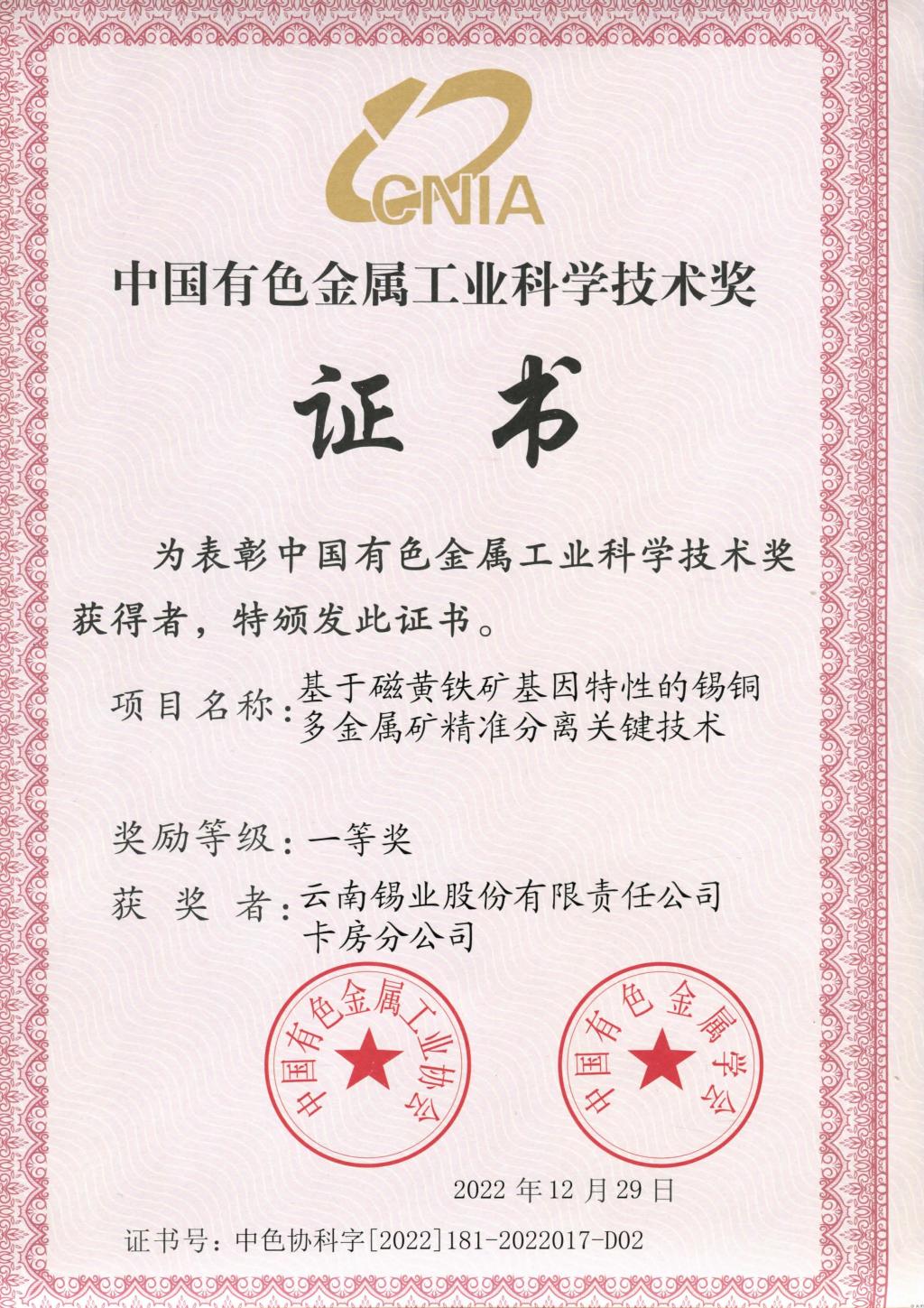 2022年,公司榮獲省部級科技進步獎一等獎2項。
