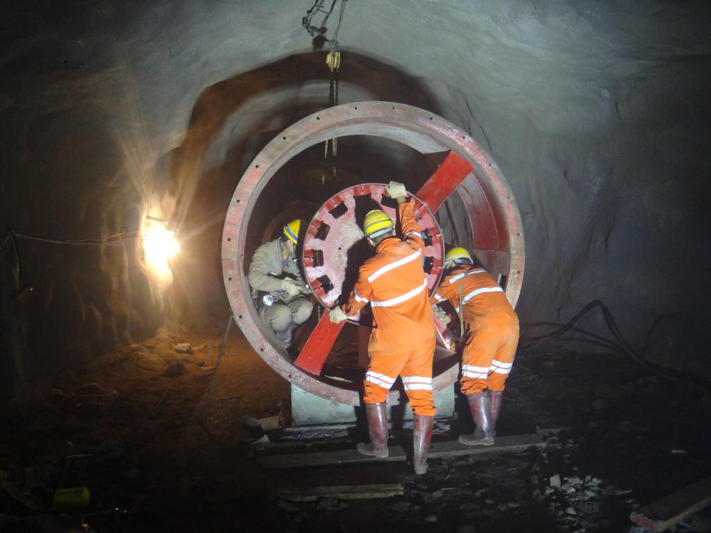 隨著高效采礦設(shè)備的不斷引進,井下通風(fēng)系統(tǒng)建設(shè)成了急待解決的問題,為此,1540中段大箐東通風(fēng)井安裝也就成了當(dāng)務(wù)之急。2016年5月,1540中段大箐東通風(fēng)井安裝工程緊張進行,所需安裝的設(shè)備中,250千瓦/時通風(fēng)機9臺、1000KvA電力變壓器3臺,供電控制柜15面,其中單臺次設(shè)備重量達6噸,可以說重量重、體積大,面對坑下近10公里的漫長設(shè)備運輸線和安裝地點的有限空間,動力工段維修組的職工們,用巨人的意志和毅力,在近50個日日夜夜里揮灑汗水,通過不懈努力,按要求完成了安裝調(diào)試任務(wù)。