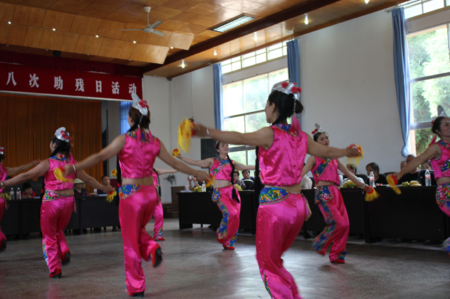 隨后,還進行了文藝表演,把助殘日活動推向了高潮。老廠政企、農村的群眾演員表演了《舞龍》《士兵小唱》《彩云之南》《彝家狂歡》等精彩的歌舞節目;個舊市殘聯志愿者表演了手語《最好的未來》,用無聲的語言表達了對美好未來的憧憬和向往;羊壩底福利廠殘疾職工獨唱歌曲《母親》,抒發了對社會、對殘疾人的感激之情,整場精彩的表演,贏得了觀眾雷鳴般的掌聲。